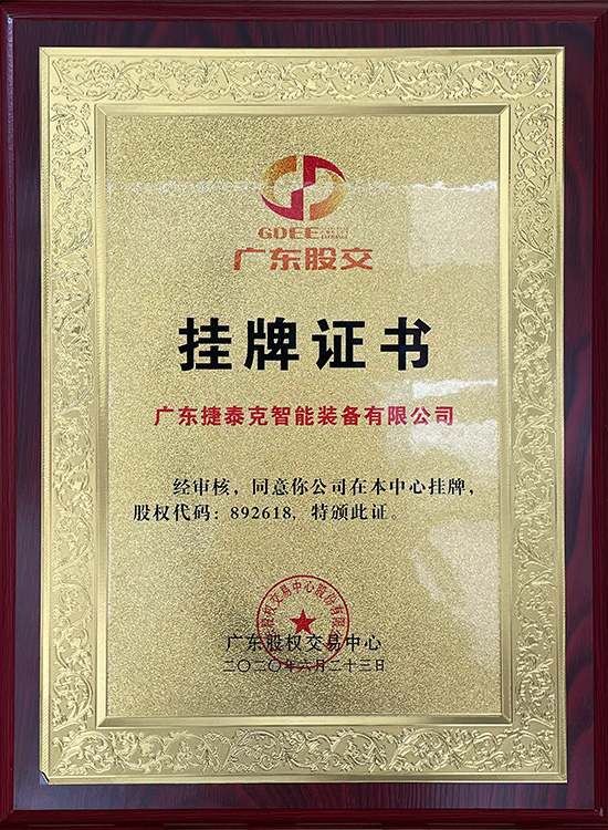 廣東新四板企業(yè)掛牌證書(shū)
